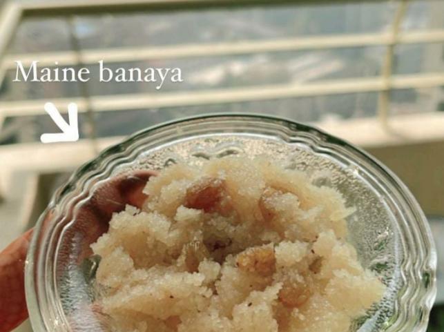 She took her Instagram story and posted the picture with Halwa in the bowl, and wrote "Maine banaya... 'chauka chardhana'."