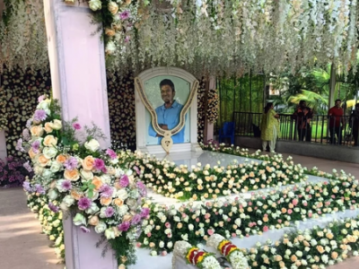 Bengaluru, Oct 29 Thousands of fans gathered at the samadhi of Kannada superstar Puneeth Rajkumar on Wednesday to pay tribute to him on the occasion of his fourth death anniversary at the Kanteerava Studio premises in Bengaluru. Fans arranged for free food distribution throughout the day and also organized eye donation and blood donation camps in memory of their beloved star.