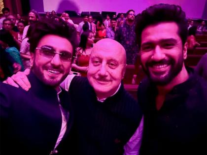 "One is Dhurandhar, other a Chhaava": Anupam Kher shares selfie with Ranveer Singh, Vicky Kaushal, calls himself "newcomer"