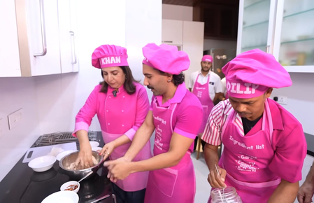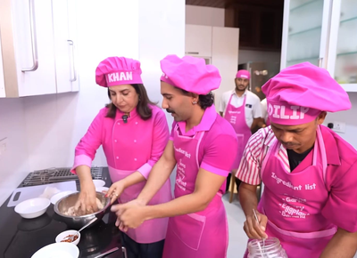 The clip featured a comedy skit where Orry, Farah, and Dilip were dressed in bright pink aprons and chef caps with their respective names written on them.