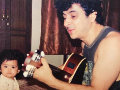 In the picture, a younger Palash is seen sitting indoors, strumming a guitar and performing in front of his six-month-old daughter who sits beside him and looking curiously toward the camera. The candid throwback captured an adorable father-daughter moment.