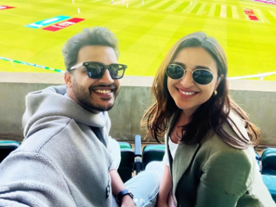 In the first picture, Parineeti and Shivang are all smiles as they pose for a cheerful selfie at a cricket stadium, clicked by Shivang himself. In the following video, the actress shows her playful side, whispering something in her brother’s ear as they share a lighthearted moment together.