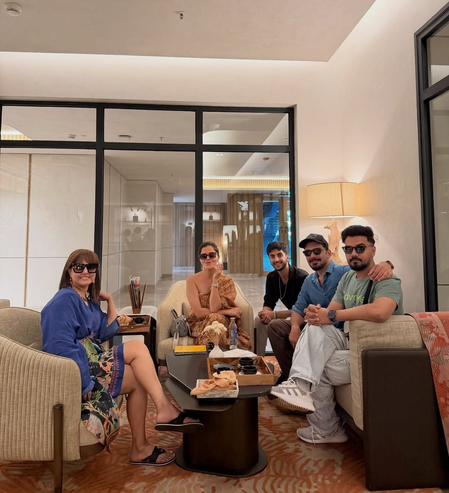 While Rubina’s mother and her twin daughters accompanied her and Abhinav, Hina's younger brother was seen having a ball of a time with his sister and brother-in-law.