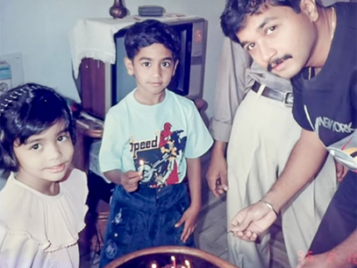 The little Pooja had a shy smile on her face as the three of them looked into the camera.