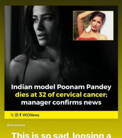 So tragic to hear about #PoonamPandey I had never met her but when life claims someone so young it is always devastating. My prayers & deepest condolences to her family,friends & everyone whose life she impacted. 🙏