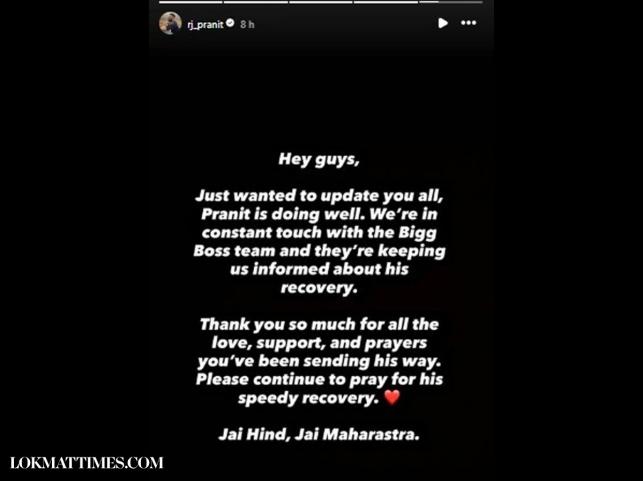 Pranit's team took instagram and gave health update. Team said that standup comedian is under medical observation, aiming to address ongoing rumors and gave reassurance to his supporters. "Hey guys, just wanted to update you all, Pranit is doing well. We’re in constant touch with the Bigg Boss team and they’re keeping us informed about his recovery. Thank you so much for all the love, support, and prayers you’ve been sending his way. Please continue to pray for his speedy recovery. Jai Hind, Jai Maharashtra.", Pranit's story read.
