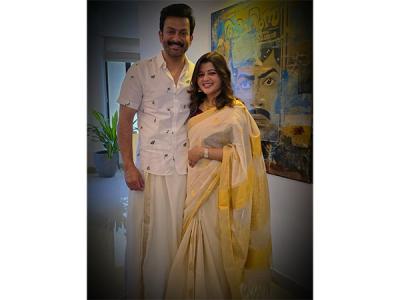 "Happy Onam! (sunflower and red heart emojis)," Prithviraj captioned the post.