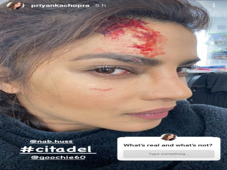 Priyanka Chopra has wounded herself during the making of Citadel. Earlier in the day, she had shared a picture in which she posed with a bloodied face and asked fans 'what's real and what's not?' She had an injury on her eyebrow. Taking to Instagram stories, Priyanka Chopra shared a photo of herself covered in several forehead wounds. In the photo, the actor had blood on her forehead and some cuts on her eyebrow and cheek. The actor then asked her fans to differentiate between her fake and real injuries and wrote, "What's real and what's not?." When a fan replied with "Cheek wound is real and not the one in forehead." Priyanka replied with a thumb's down emoji and revealed her real injury.