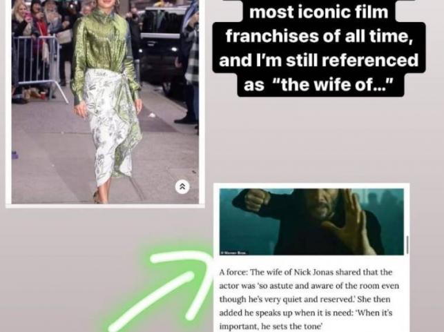 To which Priyanka wrote "Very interesting that I'm promoting one of the most iconic film franchises of all time, and I'm still referenced as 'the wife of...'."