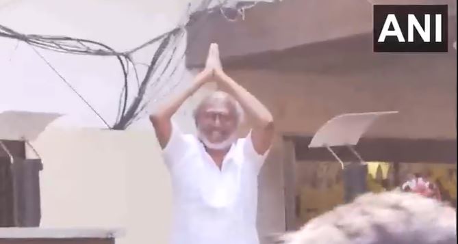 Rajinikanth greets fans outside his residence on New Year