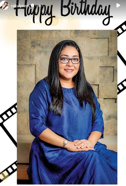 Along with the caption, Rakul Preet shared a beautiful portrait of Meghna Gulzar on her Instagram story in which she was seen wearing a blue dress and matching glasses.
