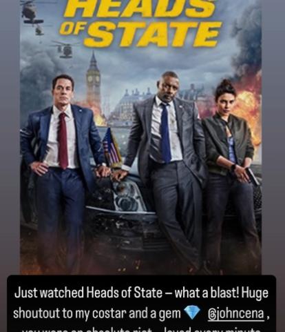 Sharing his excitement, Randeep posted, “Just watched Heads of State — what a blast! Huge shoutout to my co-star and a gem 💎 @JohnCena, you were an absolute riot — loved every minute. @priyankachopra, you lit up the screen and were the real action star of the action comedy. @idriselba, sublime as ever.. cheers to the whole team for a super fun film! 👏🎬 #HeadsOfState”