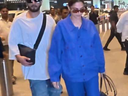 Deepika opted for a relaxed yet chic look, dressed in an oversized royal blue outfit paired with night glares, while Ranveer sported a casual ensemble.