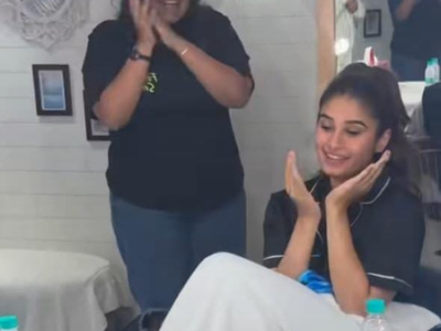 Mumbai, March 10 Raveena Tandon's daughter and actress Rasha Thadani will be celebrating her 21st birthday on March 16, but it seems like her birthday celebration has begun early this year, as she received a sweet surprise from her team on the set.