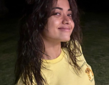 One picture shared by her shows her posing casually outdoors at night in a yellow T-shirt, while another photo captures her wrapped up warmly, peeking out with tired eyes.
