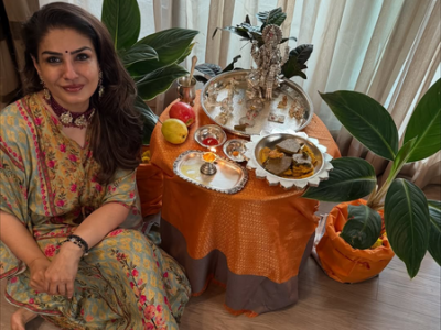 She took to her Instagram handle and dropped a glimpse of her Diwali celebration at home. The primary photo from the post showed Raveena sitting on the floor, looking beautiful in a traditional attire with the idols of devotees placed on the table next to her, along with other things required for the Diwali puja.