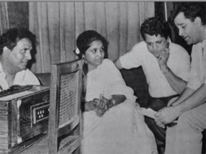 In the picture, Bhosle and Raj Kapoor could be seen sitting in a recording studio with the duo Shankar-Jaikishan.