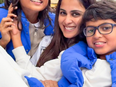 She had taken to her social media account to upload a video of her, Riteish, and their younger son Raahyl seeing off Riaan at the airport.