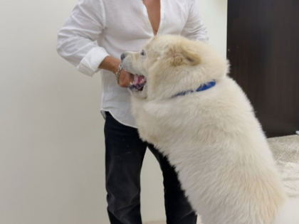 In the other pictures, Salman has clicked his furry companion, a fluffy white dog capturing his playful mood and even offering his paw to Salman.
