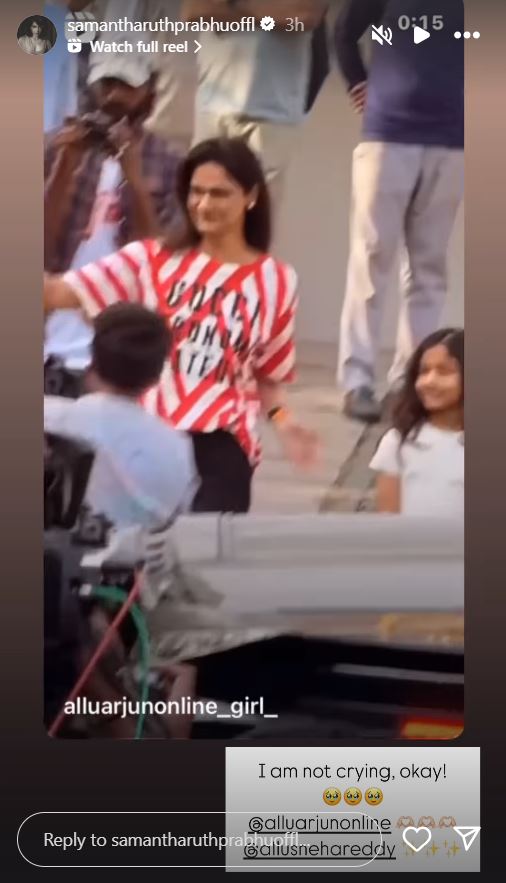 "I am not crying, okay!," Samantha wrote with teary-eyed emojis and tagged Arjun and Sneha.