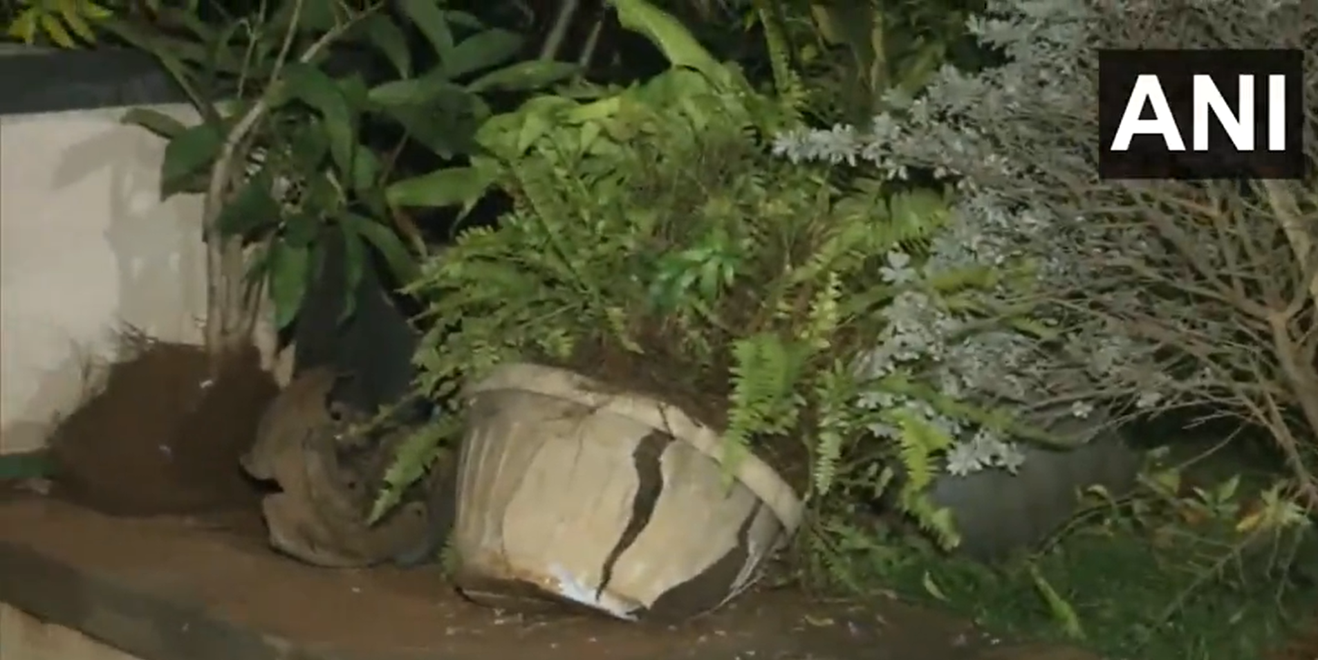 Visuals circulating online show broken pots, shattered glass, and damaged plants outside Allu Arjun's home, reportedly caused by the stone pelting.