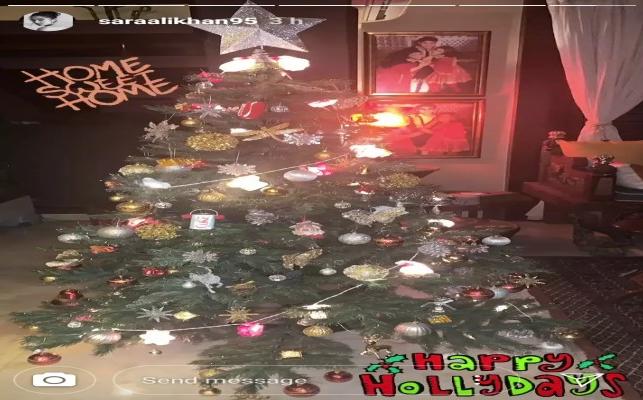 The gorgeous Sara Ali Khan is all set to welcome Christmas as the young actress recently took to her Insta-story to share a picture of her house where she has decorated her Christmas tree. In the picture, a fully decorated Christmas tree stands tall, all lit up. In the background, pictures of Sara can be seen where she is seen posing happily with her brother Ibrahim Ali and mother Amrita Singh.