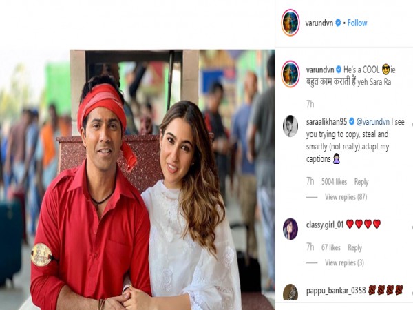 It looks like the the two main leads are enjoying each other's company as Varun also happened to share the same photo as Sara's with almost similar captions. The uncanny resemblance in the caption did not escape the gorgeous lady's attention as she accused Varun for copying her captions. Check out their fun banter below...