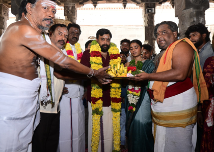 Sasikumar, Chaithra J Achar along with 'My Lord' team offer prayers at Tiruvannamalai temple