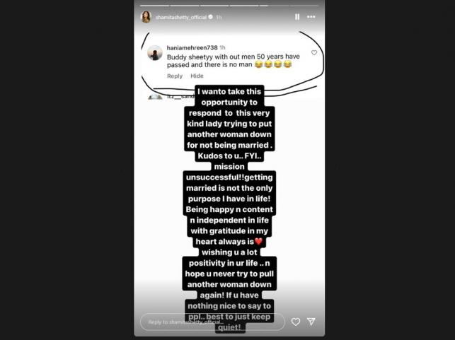 Shamita Shetty slammed a troll for hurling insults at her over her age. A female internet user recently criticised Shamita for her single status, calling her "buddhi." However, the actress responded confidently, stating she's happy and content being single and independent. She focused on positivity and said the troll's attempt to demean her failed. She also hoped the troll would refrain from putting down other women and urged her to stay silent if she had nothing nice to say.