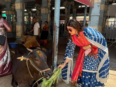 Mumbai, April 24 Actress Shamita Shetty is currently on a spiritual trip to the holy shrine of Tirupati.