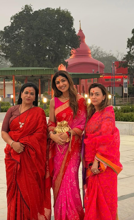 In one of the pictures shared by Shilpa, she was seen posing alongside two other women who seem to be her friends, all dressed in beautiful traditional sarees.