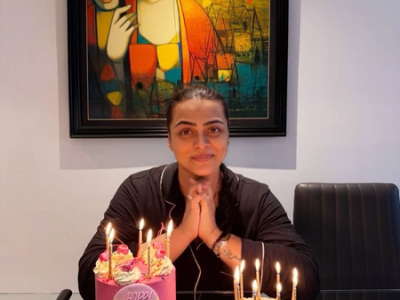 The 'Gopi Kishan' actress took to her official Insta handle and posted a photo of herself posing in front of not one, but two birthday cakes.
