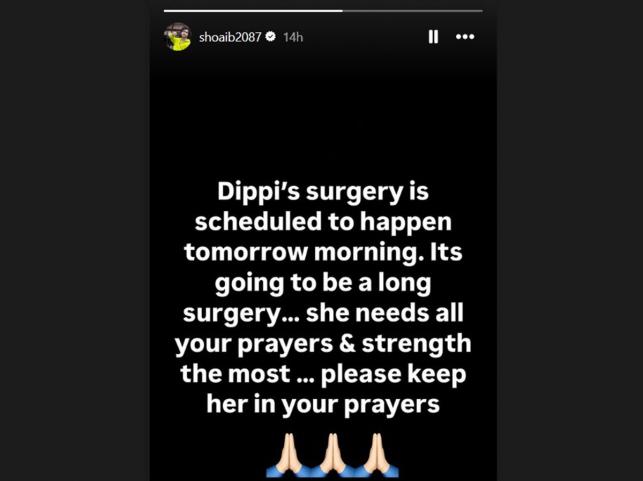 He also revealed that a crucial surgery has been scheduled for her in the early hours of Tuesday (June 3) and requested prayer from the fans. He penned, "Dippi's surgery is scheduled to happen tomorrow morning. It's going to be a long surgery... she needs all your prayers and strength the most... please keep her in your prayers."