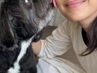 Another picture captures Shraddha sharing an endearing moment with Shyloh, as the dog affectionately licks her cheek while she smiles.