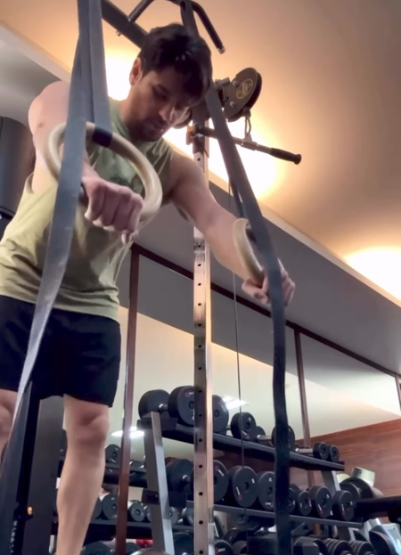 The clip, which included the text, "No shortcuts. Just work", showed Sidharth working on his upper body using gymnastic rings.