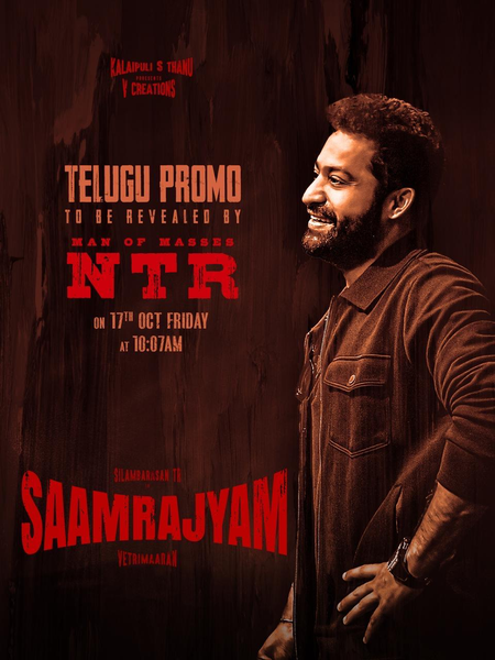 Taking to his timeline, producer Kalaipuli S Thanu, who is producing the film, wrote, " NTR for STR. The empire rises beyond borders! The much-awaited #Arasan now roars in Telugu as #Saamrajyam - a kingdom of power, pride, and pure mass! The Man of Masses @tarak9999 will unveil the Telugu promo on 17th Oct, Friday at 10:07 AM #NTRforSTR."