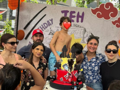 Soha took to Instagram to share a string of images from the birthday party. The pictures featured Soha, Saif Ali Khan, Kareena, Karisma Kapoor, Saba Ali Khan, Neha Dhupia, several children, and Jeh, who seemed to be at the centre of the cheerful mayhem, even if he wasn’t clearly visible in the frames.