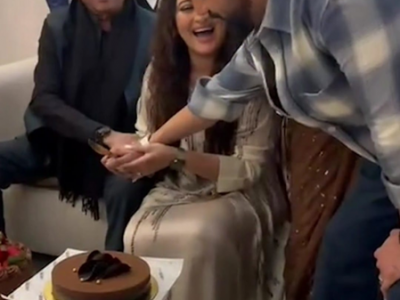 In the video shared by Pooja, Sonakshi Sinha is seen seated in the middle of both the birthday boys and cutting the cake with them.