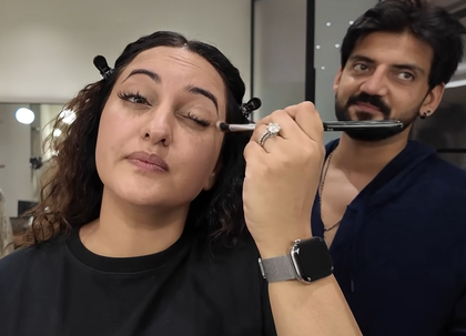 Once this was done, Sonakshi moved on to her eyes, which she started by putting a shadow stick as a base. Next, the 'Dabangg' actress applied black eye shadow to get that smokey eye, which she achieved by blending the eye shadow with the help of a brush. After the black eye shadow, she applied the lighter brown shade to the top of the eyelid and blended it all for a flawless smokey eye.