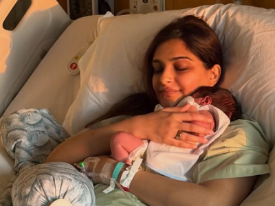 In the first picture shared by the actress, Sonam is seen lying on a hospital bed, gently cradling her newborn against her chest, with her eyes closed and a faint smile of fulfilment on her face.