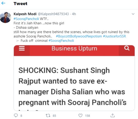 The tragic demise of Sushant Singh Rajput is yet to sink in and it looks like the actor's death case is getting murkier by the day. Now a new name has emerged in the case which is of actor Sooraj Pancholi as certain Twitter users have now linked Sooraj Pancholi to Sushant Singh Rajput’s late manager, Disha Salian. They claim that Disha was dating Pancholi, and she was pregnant with his baby.