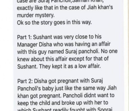 For the unversed, Disha Salian who was Sushant's former manager died after falling off the 14th floor of a building in Malad, Mumbai and was declared dead upon arrival at a private hospital.On the other hand, Sooraj is already entangled in the ongoing case of actress Jiah Khan’s suicide. The actor was dating Jiah, and she reportedly suffered from depression after having an abortion. Meanwhile, Sushant Singh Rajput was found dead at his residence on June 14 where the actor was found hanging at his residence. The Kedarnath actor's final autopsy report ruled out any foul play. Check out the shocking messages here....