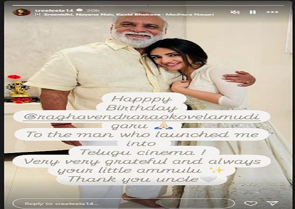Sreeleela took to social media today to wish legendary filmmaker K. Raghavendra Rao a heartfelt happy birthday, recognizing the ...