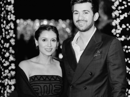 The picture shared by Karan, shows the couple posing together against a backdrop of twinkling fairy lights. The young actor looks dapper in a suit paired with a crisp shirt, while Drisha stuns in an elegant strapless outfit with a shawl draped around her shoulders, and holding a clutch.