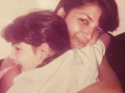 The first picture shares by Sussanne is a nostalgic throwback featuring Khan from her childhood days, being warmly hugged by her mother Zarine Khan.