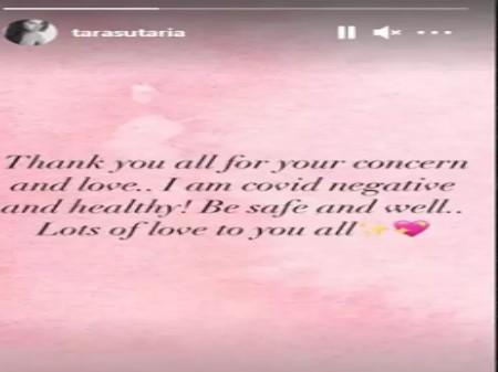 In the last week, a number of celebs tested positive for the novel coronavirus including Ranbir Kapoor, Siddhant Chaturvedi, Ashish Vidyarthi and Tara Sutaria. Now the Student of the Year 2 star as tested negative for Covid-19, she confirmed the same in a social media post. The actress wrote in an Instagram story, “Thank you all for your concern and love.. I am covid negative and healthy! Be safe and well.. Lots of love to you all.”