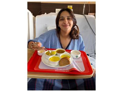 In her post, Akansha shared a picture of herself from a hospital bed and another of her in athleisure.