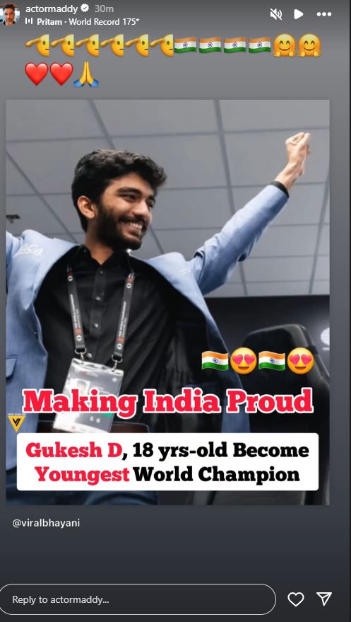 In another Story, he shared visuals from D Gukesh's winning moment and captioned,"This is how we do it. We win we celebrate we pray and thank the almighty. World Champion."