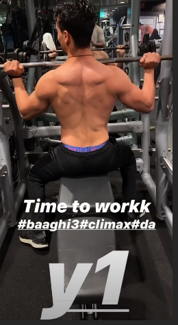 Tiger Shroff 's Baaghi 3 is one of the most anticipated films of 2020 which promises to be high on action and drama. The Ahmed Khan directorial which is currently been shot in Siberia looks like is in the final phase, with the lead cast all set to shoot the climax scene. In a recent, Insta story shared by Tiger, the actor, can be seen working out in the gym before facing the camera. The 'Heropanti' star captioned the video, "Time to workk #baaghi3climaxsceneday1"