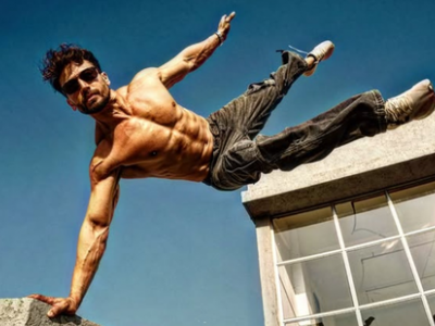 In the picture shared by Tiger, he is seen flaunting his chiselled physique while performing a gravity-defying stunt.
